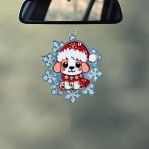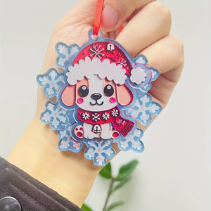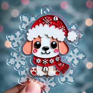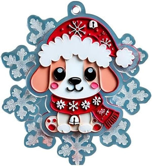 2-Pack Christmas Dog Ornament - Acrylic Material, Snowflake with Santa Hat Dog, Festive Holiday Decor for Car, Home, or Tree, for Dog Lovers, 3.14 x 3.14 Inches