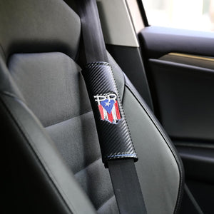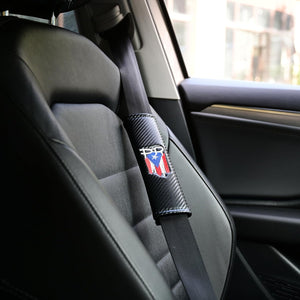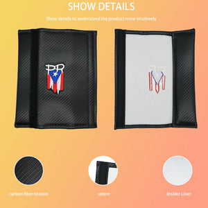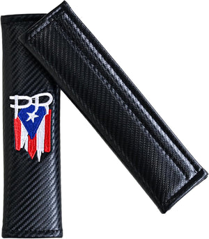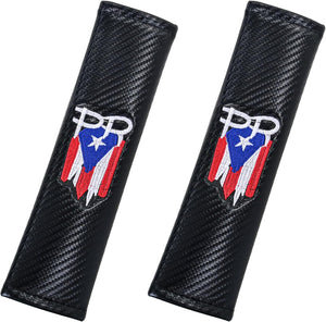 2-Pack Puerto Rico Flag Carbon Fiber Seat Belt Covers with PR Letters, Embroidered Design – Stylish & Comfortable Seat Belt Pads for Car, Truck, SUV – Premium Puerto Rican Pride Accessory