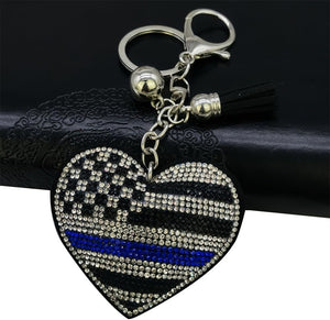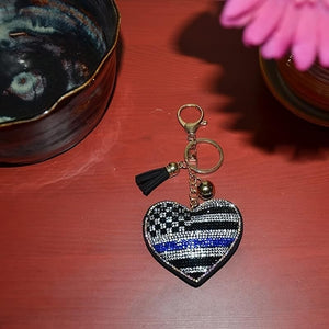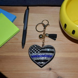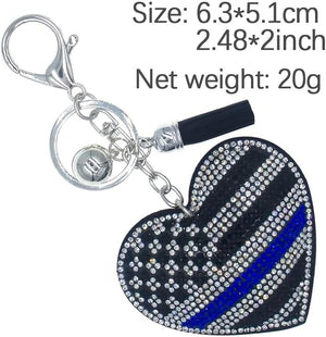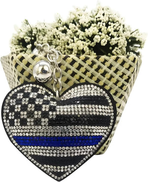2-Pack Thin Blue Line Heart Keychain - Rhinestone Embellished Accessory for Law Enforcement - Perfect for Keys, Bags, or Backpacks - 2.48 x 2 Inches