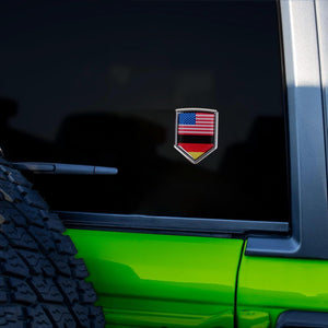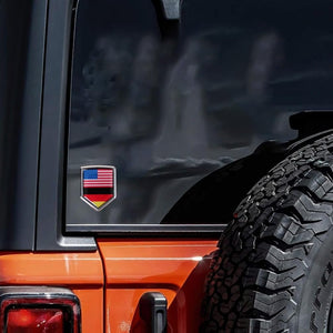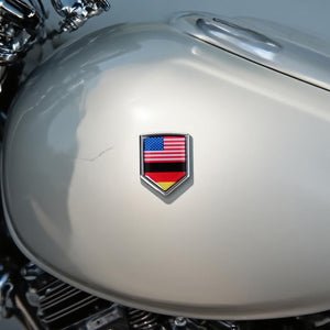 - 2-Pack USA and Germany Flag Decals: Includes two premium 3D chrome decals with the USA and Germany flags.