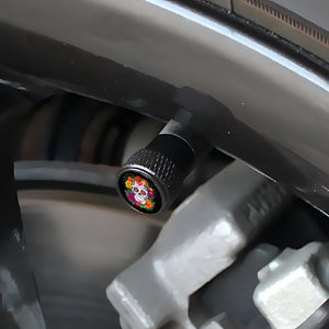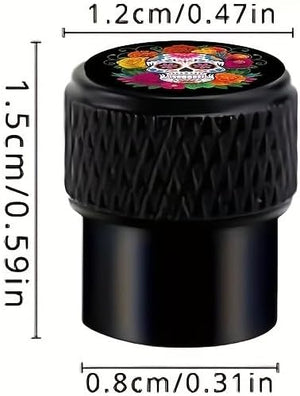 4-Pack Day of The Dead Valve Stem Caps – Vibrant Sugar Skull Tire Air Caps, Thickened Aluminum Material, Universal Fit for Cars, Trucks, Motorcycles, Car Tire Personalized Decorative Caps