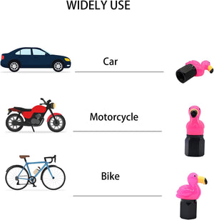 - Fun & Playful Auto Decor Perfect for adding a fun and unique accent to your car or bike, these flamingo valve stem caps make a great tropical gift for drivers or bike enthusiasts.