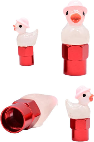 4-Pack Handmade Glow-in-The-Dark Pink Duck Valve Stem Caps for Schrader Valves, Adorable Car & Bike Accessory, Cute Auto Decor, Unique Wheel Accent, Fun Gift for Car Enthusiasts