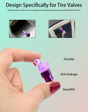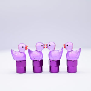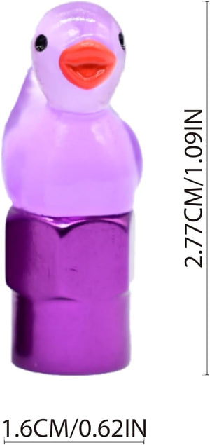 4-Pack Handmade Glow-in-The-Dark Purple Duck Valve Stem Caps for Schrader Valves, Vibrant Car & Bike Accessory, Cute Auto Decor, Novelty Wheel Accent, Unique Gift for Car Enthusiasts