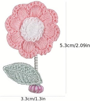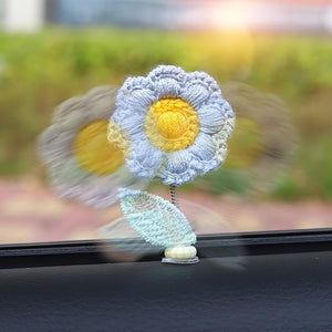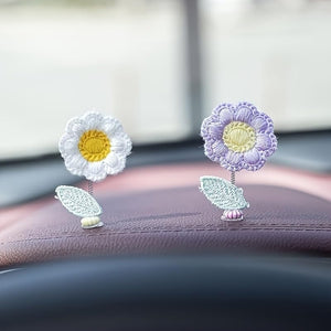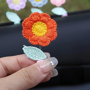 5-Pack Crochet Flower Car Ornaments - Handmade Bobbing Flowers in Purple, Pink, White, Orange, Charming Dashboard & Rearview Mirror Decor, for Home or Office, 2.09 x 1.3 Inches