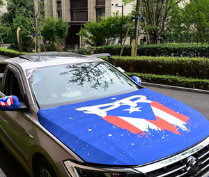 PR Letters and Starry Design Puerto Rico Flag Car Hood Cover and Mirror Covers Set, 4x5.25 ft Stretchable Fit for Cars Trucks SUVs, Windproof and Fade Resistant