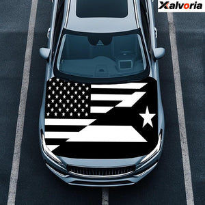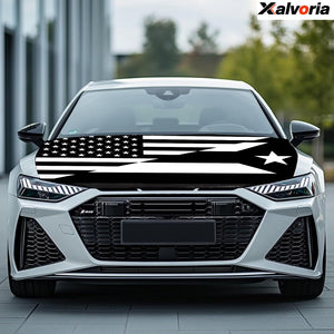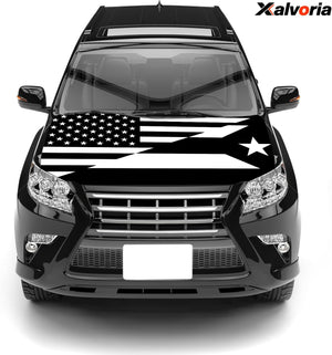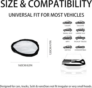 USA & Puerto Rico Black & White Flag Car Hood Covers – 4' x 5.25' Durable, Fade-Resistant Polyester Fabric, Universal Fit, Patriotic Car Accessories & Exterior Decor for Cars, Trucks & SUVs